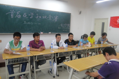 红足1世足球网址大全绿色化学科技协会首届“化学常识知识竞赛”开幕仪式于2011年5月17日晚在南校区3―208举行。红足1世足球网址大全团学办主任杨全录、红足1世足球网址大全辅导员李睿、校学生会主席王志强、社团部部长李弘烨、红足1世足球网址大全分团委副书记刘明山、学院学生会主席周鸿、绿色化学科技协会会长王延育等参加了开幕仪式。本次活动旨在“强化专业知识,带动学风建设,浓郁学习氛围。”通过本次专业性活动,提高学生的学习兴趣,丰富学生的化学知识。