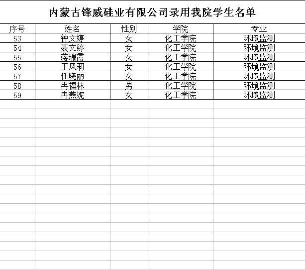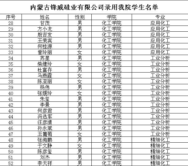 内蒙古锋威硅业录取学生名单