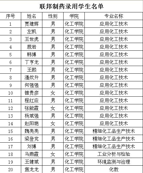 联邦制药集团录取学生名单