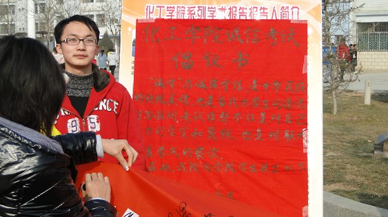 (二)12月22日上午,在学院网页上发布了诚信考试倡议书,同时制作悬挂了“用诚实谱写人生答卷,凭实力收获理想成绩”的横幅。