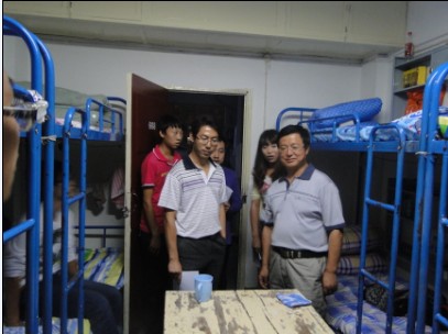 2012年9月4日晚,校长助理、红足1世足球网址大全院长王克太,副书记、副院长张兴辉以及各专业新生级主任和辅导员一行深入6号楼、9号楼新生宿舍,看望今年新报到的2012级学生。