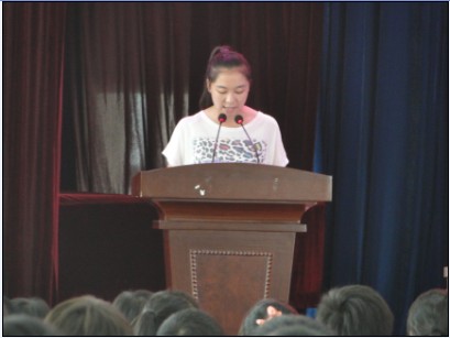 在校生代表、学生会主席童斌发言
