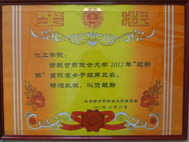 团结显力量,拼搏创佳绩。我院篮球代表队在学校2012年9月举办的 “迎新杯”篮球赛中,经过学生的积极参与和全体运动员的顽强拼搏,男队夺得亚军、女队取得季军。展示了队员较好的篮球技能,体现了我院学生善于团结,勇于奋斗的精神。