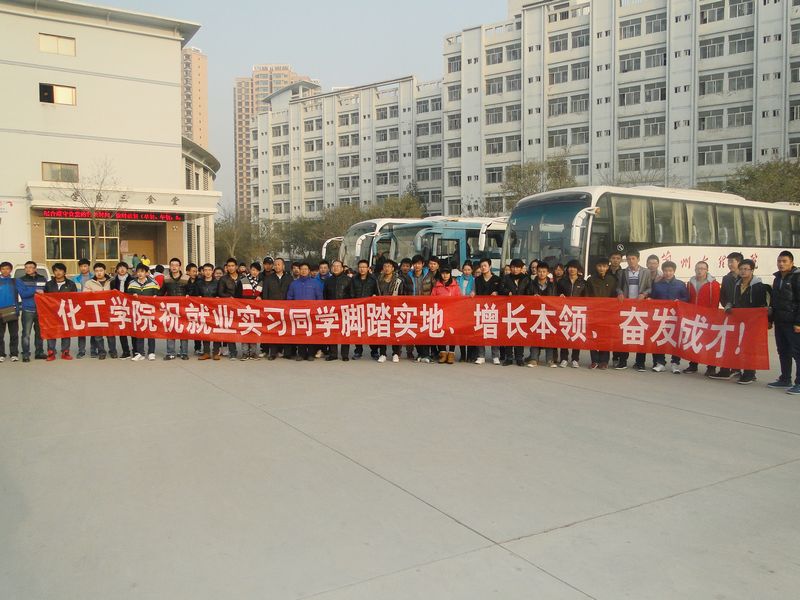 从11月19日起,我院215名2014届毕业生陆续赴企业实习就业。学生实习单位主要包括:新疆天业集团、内蒙联邦制药、浙江恒力集团、新疆梅花氨基酸有限公司等。本次实习就业体现出人数较多、专业对口等特点。学院高度重视学生实习就业工作。研究由展惠英、牛腾、师海雄、王进喜、王尹杉、姜田等老师带队,指导实习,考察企业。每批学生离校时,学院领导到车队相送。学院要求实习学生在企业注意自身安全,努力完成实习任务,顺利就业。