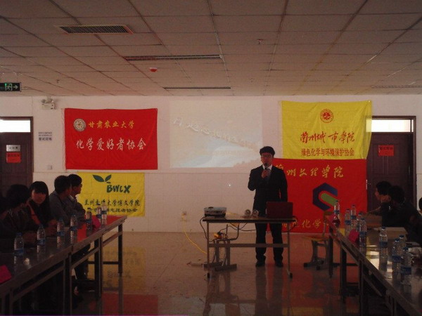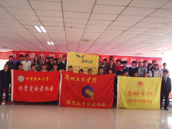 2015年4月11日,第二届甘肃高校化学社团环保交流会在兰州交通大学博文学院举行,我院绿色化学科技协会应邀参加了此次交流会。参加此次交流会的社团还有甘肃农业大学化学爱好者协会、兰州城市学院绿色化学与环境保护协会和兰州交通大学博文学院绿色环保志愿者协会。
