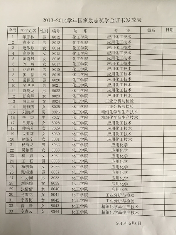 热烈祝贺我院年彦林等33名同学获得国家励志奖学金