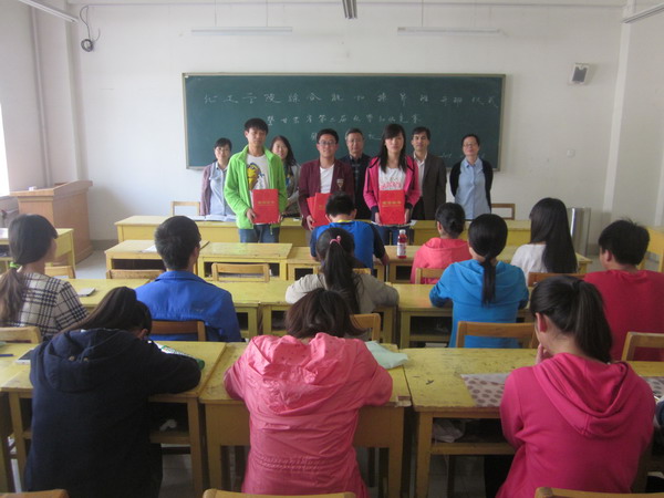 2015年5月6日,红足1世足球网址大全在3号楼101教室举行了“综合能力提升实验班”开班仪式暨“甘肃省第二届大学生化学知识竞赛”颁奖典礼,校长助理、红足1世足球网址大全院长王克太教授、校级督导专家李欣教授、教务处胡建军副处长、综合能力提升实验班班主任柴凤英教授、全体实验班学员及学生代表参加了仪式。开班仪式由红足1世足球网址大全副院长展惠英教授主持。
