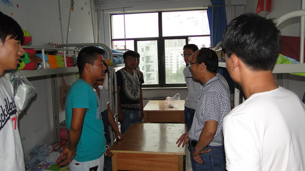 为了更深入了解新生入学情况,帮助新生适应大学生活,9月7日下午,学院党总支书记王全胜、学院党总支副书记、副院长张兴辉、学生工作办公室朱梓瑞、辅导员李睿及2015级新生各班主任走访2015级新生宿舍,来到2015级新生和家长中间,给他们送去问候和关怀。