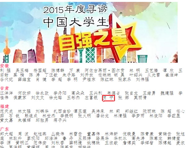 祝贺我院�宁同学荣获2015年度“中国大学生自强之星”提名奖