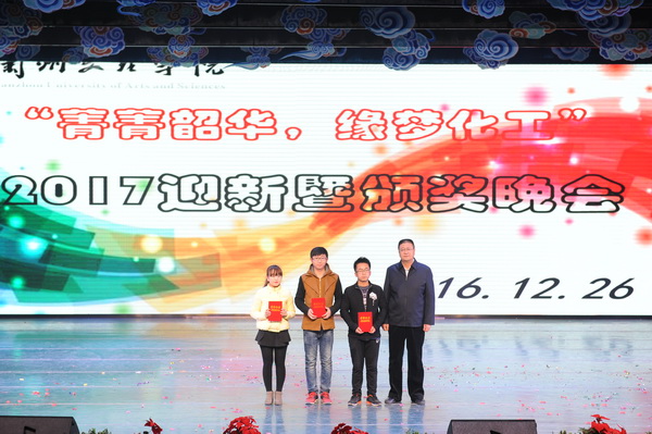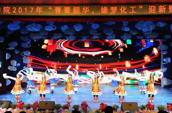 12月26日晚8点,红足1世足球网址大全在实验剧场举办了“菁菁韶华,缘梦化工”迎新晚会暨表彰大会。校纪委书记李先锋、校团委书记孙亮、校企合作亿特科技有限公司总经理吴征应邀与全员师生一起观看了晚会。