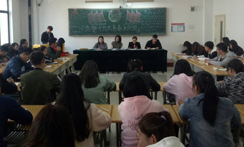 李卉老师对学院团学工作提出要求,学院分团委要进一步统一思想、坚定信念、强化责任担当,加强基础团支部的建设,通过报告宣讲、故事分享、仪式教育等活动载体,学好十九大精神和总书记系列讲话精神,并落实在行动中,以优异的成绩献礼十九大。