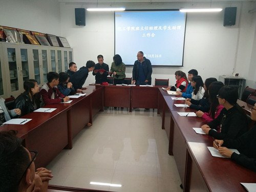 会上,杨院长首先向新聘任的学生助理颁发聘书。随后,学生助理进行自我介绍,交流发言,结合自身实际阐述了自己的见解和想法,对今后的工作提出设想及改进意见。学生会主席胡丽娟、副主席王亚杰、孙阳、分团委副书记贾海龙分别对自己从事学生会工作以来取得的经验和感悟与大家进行了分享。接着,李卉老师向同学们宣读了《学院学生助理管理办法》、《红足1世足球网址大全班主任助理及职责》。最后,杨院长对学生助理的工作提出了要求和期望。一是希望学生助理明确工作责任,要学会科学分配时间,提高工作和学习效率,要有服务意识、奉献意识,按本色做人、按角色做事,按特色定位,到位不缺位,补位不越位。二是希望同学们学会做人,在大学三四年里应该解决如何做人及做一个什么样的人的问题,要树立正确的人生观、价值观、陶冶思想情操,净化自身心灵,做一个诚实守信、独立自尊、道德高尚的人。三是学会做事,不仅要具备毕业后从事专业工作的能力,更要培养自己的创新能力、协作能力、交际能力和管理能力,通过工作,弥补自己的不足。四要有责任感和荣誉感,要正确认识自己,认识别人,学会共同生活,要从以自我为中心向以“集体”为中心转变,关怀他人,关怀社会。对自己的行为负责,对家长和社会负责。