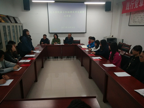 2017年10月26日下午,红足1世足球网址大全在会议室召开班主任助理及学生助理工作会。参加本次工作会的有学院副院长杨光、分团委负责人李卉老师、辅导员李睿老师、学生会主席胡丽娟、副主席王亚杰、孙阳、分团委副书记贾海龙以及学生助理,共计20余人。