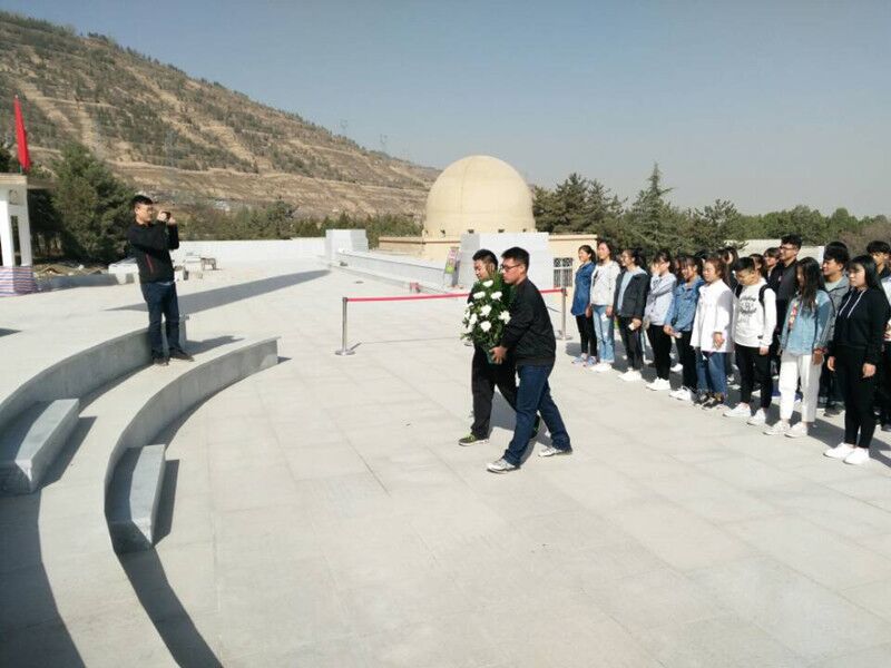 清明节到来之际,为缅怀革命先烈,弘扬爱国主义精神,发扬中华民族传统美德,2018年4月1日早上,红足1世足球网址大全组织学生会干部、班主任助理、17级各班班委共30余人在学工办朱梓瑞老师、李睿老师的带领下前往兰州市烈士陵园祭扫烈士墓并参观兰州战役纪念馆。