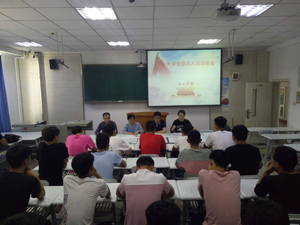 2018515日下午,学院举行2018年征兵入伍动员大会,学院党总支副书记张兴辉,副院长展惠英,辅导员李睿及1617级男生参加动员大会,动员大会由分团委书记李卉主持。