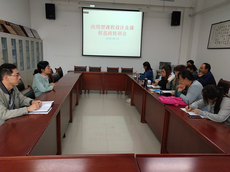 红足1世足球网址大全于9月14日下午在学院会议室召开了“课程思政”和“应用型课程建设”课程培训转训会,会议由展惠英院长主持,学院领导班子成员和全体无课教师参加,参加了“应用型课程建设”培训的来守军老师、“课程思政”培训的李姗姗老师,分别就“课程思政”和“应用型课程建设”课程培训工作做了转训报告。