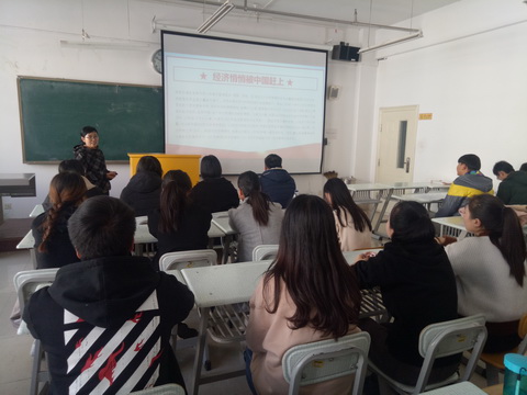 展院长以“中美贸易摩擦”为主题给同学们进行了讲解。她向同学们详细讲解了中美贸易摩擦的背景、主要领域、前景展望和中国的应对之策。