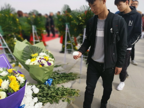 青山默默,松涛阵阵。一路前行的同学整齐有序的地向纪念碑前进,今天,在这里他们以革命的名义,追忆那为国献身的铮铮烈骨;以现代化建设飞速发展的现实来告慰英魂。