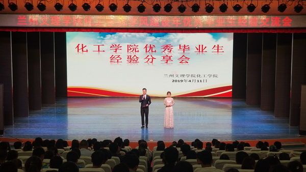 九名优秀毕业生依次上台,分别从在校期间的学习、工作后的收获、对学生们的建议等方面进行了宣讲。一开始胡丽娟学姐给在座学生讲述了大学时光令自己充实、成长、收获,在校期间担任学生干部的经历锻炼了自己的能力;吃苦耐劳、坚持不懈是她升职的法宝,做任何事入门容易,做好的确很难,珍惜身边的人,做好现在的事,建议在场学弟学妹在实际工作中要做到多问、多看、多积累,让自己成为有竞争力的人。贾明学长强调一定要注意提升自己的综合素养,在实际工作中,与人交谈沟通的能力很重要,建议在座的学生永远不要丢掉自己的学习能力,提升自信,调整好自己的心态,学会记录和总结自己的经历教训,不言失败再接再厉;贾海龙学长则从反面“调侃”了自己在大学生涯事,气氛风趣幽默,令在场学生笑声不断,从”挑战、如何择业、职业定位”等方面以自己职场的阅历强调化工专业知识的重要性、在校期间怎样去实践等。紧接着,浙江众立合成材料科技股份有限公司副总经理文强先生就本次交流会向广大化工学子分享自己的感悟,和企业对于人才的期许。同学们认真聆听学长学姐的谆谆教诲,分享经验完毕后,互动交流环节现场同学提出了自己的困惑与疑问,毕业生们也悉心解答,最后,17级应用化学一班赵瑶瑶作为在校学生代表发言,她说:“首先,我们要有目标,有信仰,有追求;然后要有毅力,会坚守;最终成为一个内外兼修的人”。最后,各位领导和教师向各位优秀毕业生颁发纪念礼品,主持人宣布本次经验分享会圆满落幕。