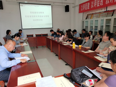 2019年4月28日下午,学院召开了实验室安全教育暨实验室危险化学品安全管理培训转训会,全体教职工参加,院长展惠英主持会议。