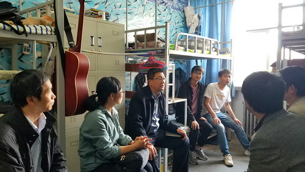 2019年5月14日,校纪委书记李先锋深入所联系的红足1世足球网址大全16级应用化学1班9-502宿舍,和学生们亲切座谈交流。红足1世足球网址大全院长展惠英、副院长师海雄、学生处副处长王金平、后勤处副处长王振乾、学生处马建顺老师、学院学生工作办公室朱梓瑞老师陪同。