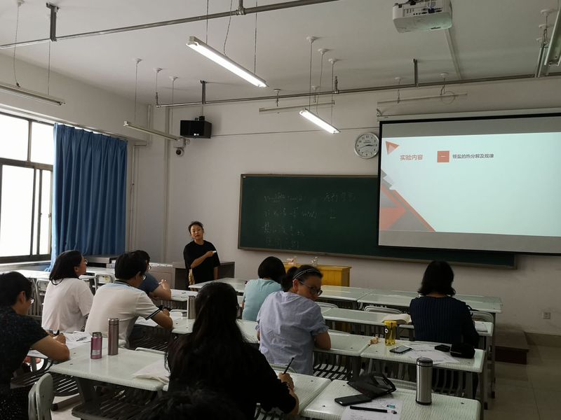 王吉霞老师展示了她在《无机化学实验》中,运用她多年的教研成果,采用“分段式”教学方法,引导学生完成零碎的无机化合物性质验证实验,王老师利用与生活息息相关的视频激发学生学习的兴趣,将“绿色化学”和“科学素养”等“思政”内容巧妙的融入到教学中,充分体现了课程思政的育人功能。