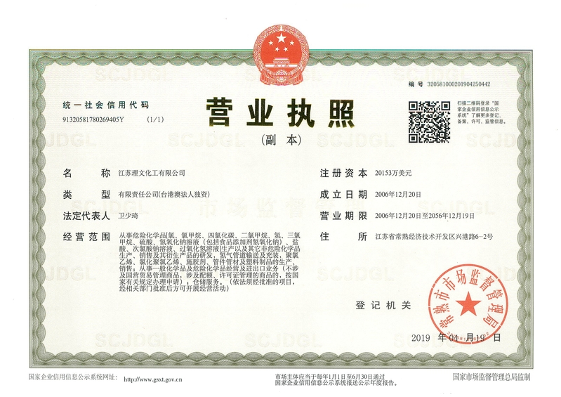 江苏理文化工有限公司地处素有江南明珠、虞山福地之美誉的常熟,常熟市位于江苏省东南部,地处长三角经济发达地区,东倚上海,南连苏州,西邻无锡,北临长江于南通隔江相望。公司于2006年设立,占地800亩, 2008年建成投产,年产22万吨烧碱、16万吨甲烷氯化物及6万吨双氧水、1万吨氯化聚氯乙烯、2万吨苯丙施胶剂。在氯碱行业的技术水平已经处于国内领先,吨碱能耗达到国际先进水平。在2012年获得了高新技术企业称号,在2017年取得了由中国环境报理事会授予的“2017年度绿色企业管理奖”,是国家环保部对外合作中心示范工程,环保绿色企业,是江苏省安全标准化示范企业。理文化工立足于中国,面向世界,依靠高科技人才和先进的生产技术装备,采用国际化管理手段,牢固树立绿色环保发展理念、投资未来;以满足并超越客户要求,创建一个安全、环保、优质的化工生产基地,并逐步成为同行业的典范。