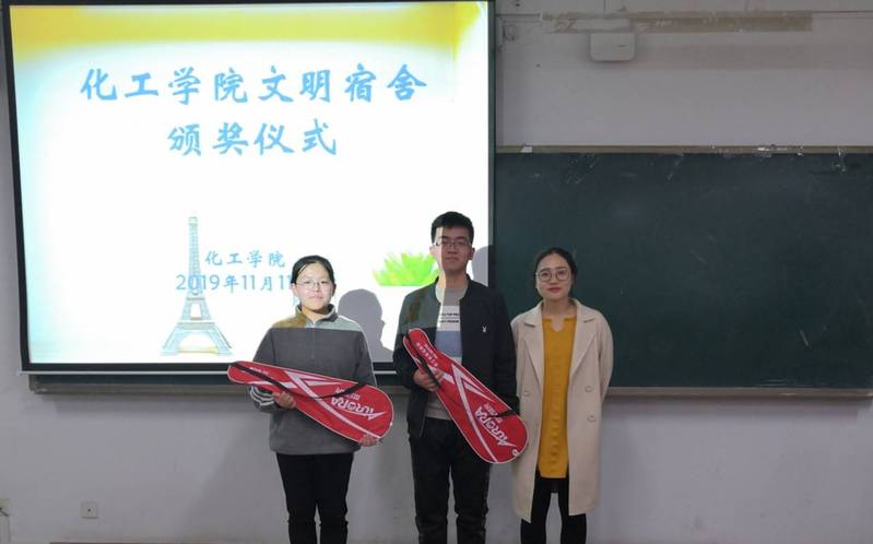 颁奖仪式伊始主持人宣读了获奖宿舍名单,李凯青老师为获奖宿舍代表颁发奖品。