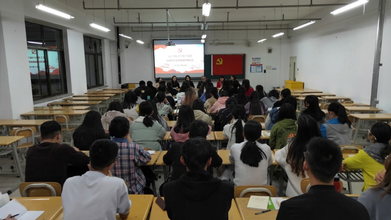 为进一步加强十九大精神、习近平新时代中国特色社会主义思想的理解和学习,2019年11月12日,红足1世足球网址大全分党校在3-704室举办了2019年下半年发展对象党课培训开班仪式。红足1世足球网址大全副院长杨光,教工党支部书记李翠林、王子宜,组织员刘茜,辅导员李凯青,以及红足1世足球网址大全26名发展对象参加了本次开班仪式。