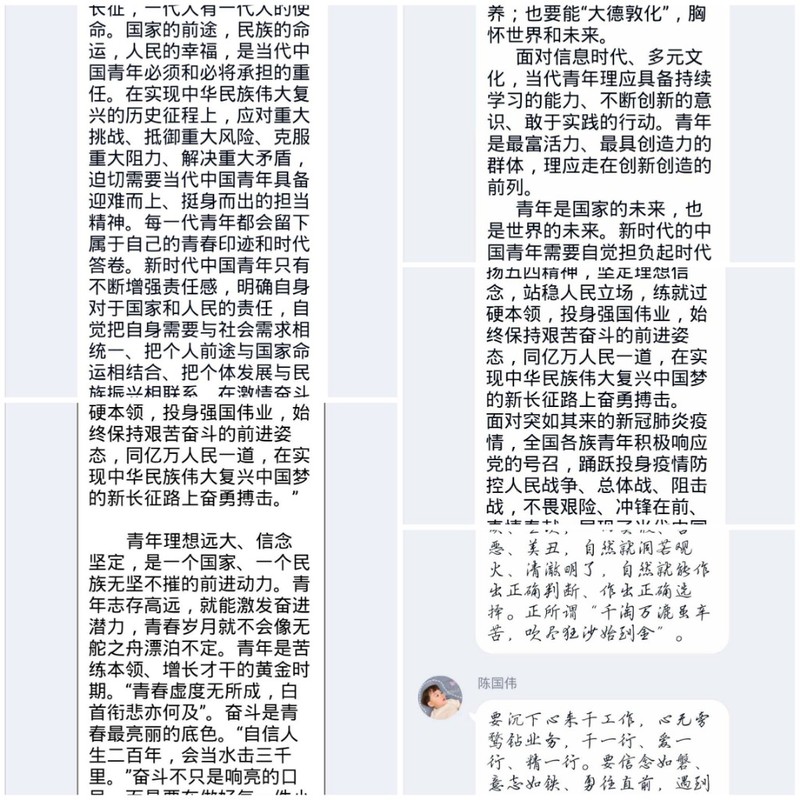 2020年5月9日,学院学生第一党支部召开主题为“学习习近平总书记对新时代青年的寄语”线上主题党日活动。全体学生党员参与学习,支部书记雷芸主持会议。