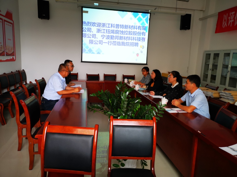 2020年6月16日,宁波市象山县重点企业招聘宣讲会在学院举行,本次招聘的重点企业为宁波勤邦新材料科技有限公司、浙江科普特新材料有限公司、浙江钰烯腐蚀控制股份有限公司。
