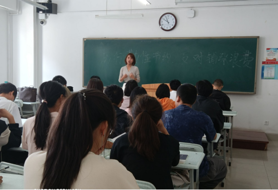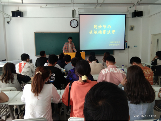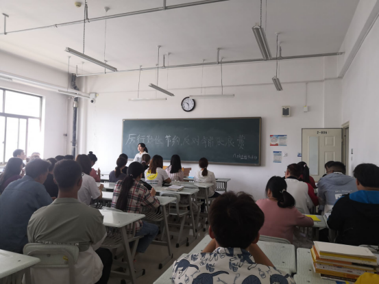 各班班主任以PPT讲解、观看短视频的方式,组织召开了形式多样、内容丰富的主题班会。班主任从党中央关于践行“厉行节约、反对浪费”的历程,向学生讲解党中央对于厉行勤俭节约的坚定决心和已取得的成效。告诫同学们一个人浪费一点粮食不显眼,但全社会加起来就是一个天文数字餐饮浪费不是小事,事关我国粮食安全,事关社会道德风尚,事关良好作风养成,疫情敲响的警钟不允许我们有丝毫浪费的行为,勤俭节约,反对浪费贵在平时,重在坚持,希望同学们能珍惜当下来之不易的生活环境和学习环境。要求班委和学生党员作为学生中的标杆和领头羊,要做到以上率下,用自己节约的习惯与行动影响其他同学,起到榜样的作用。各班班主任倡议同学们在食堂用餐时,遏制“舌尖上的浪费”,践行“光盘行动”,按量所取,吃光盘子中的食物;用水时,坚决杜绝“长流水”现象;离开教室图书馆随手关灯,节约每一度电。
