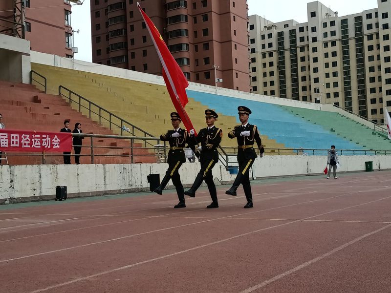 2021年4月10号早上8:30分运动会开幕式如期举行,伴着雄壮的乐曲,踏着坚定的步伐,国旗护卫队首先步入会场,他们擎着五星红旗,向祖国献礼。紧接着各班级的运动员方阵有秩序地步入会场,响彻操场的口号中,听出了他们勇往直前、永不言败的青春誓言。
