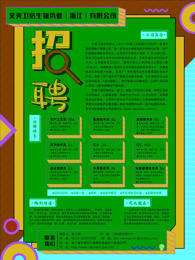 艾美卫信生物药业(浙江)有限公司招聘简章