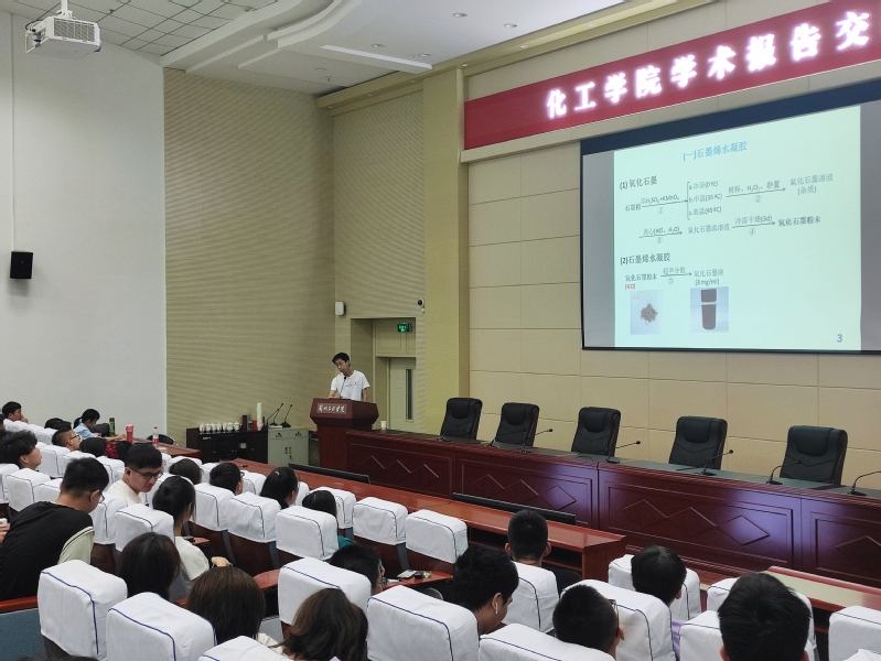 赵晓华博士的题为《Co-MOF-74设计、调控及析氧性能研究》讨论了如何对Co-MOF-74电催化剂进行改性进而使其析氧性能得到提升,并且向同学们分享了如何做好科研。孟晓义博士的题为《电化学能源存储与转化功能材料的研究》主要从国内外电化学能源存储与转化功能材料的发展历史、石墨烯在超级电容器中的应用、电催化水分解中催化剂结构与反应机理等方面作了直观阐述,并向同学们分享了自己做科研时的有趣故事,进而启发学生要有严谨科研精神。夏娅娜博士的题为《柔性吡啶氨基甲酸酯类配体的阴离子识别和配位聚合物构筑的研究》着重讨论了配位聚合物的构建及应用。