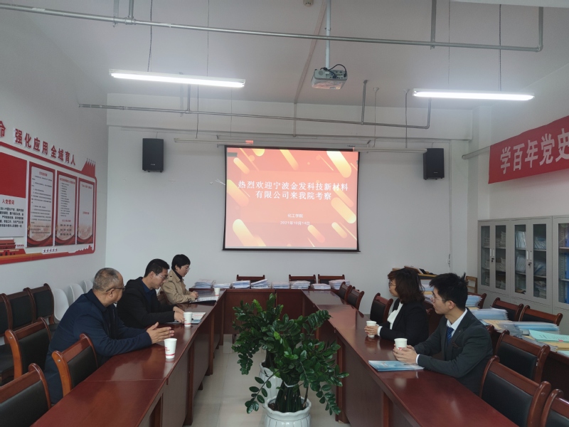 院长张兴辉介绍了学院学科专业建设和发展、师资队伍建设、科研团队建设、实验室建设、人才培养模式及学生实习就业的模式,李彩君就学生联合培养、顶岗实习的模式与学院领导进行了深入探讨;王占芳介绍了金发科技新材料有限公司、重大项目发展趋势、产品开发方向、公司环境和生活保障,着重介绍了员工发展和成长路径。