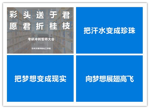 为了鼓舞考研学生,学生会干部将考研寄语以快闪的形式进行播放。