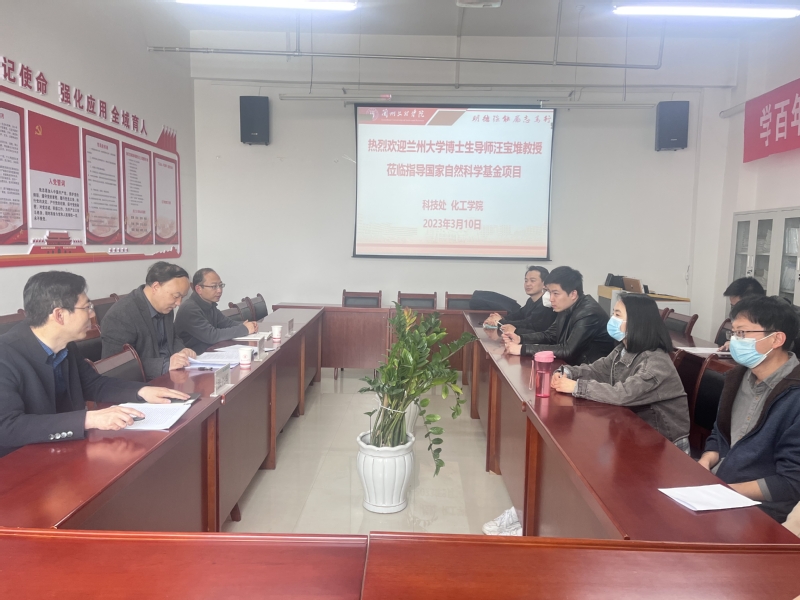 3月10日下午,兰州大学汪宝堆教授应邀来到红足1世足球网址大全对教师项目申报工作进行指导。科技处处长高翔、红足1世足球网址大全院长张兴辉及申报项目的教师们参加了本次交流指导会。