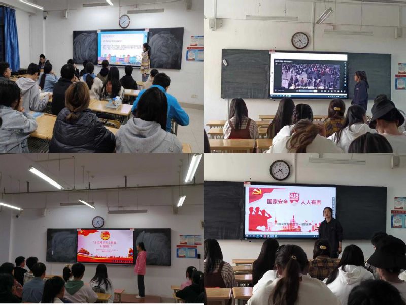 2022级应用化学班团支书海俊同学带领大家一起奏唱团歌,重温入团誓词,为大家讲述了何为“国家安全”并为大家分享自己对于“国家安全”的理解。20应用化学二班高雲以国家安全为切入点,通过PPT、演讲、观看有关安全教育宣传片等方式展示了生动鲜活的实例,讲解了国家安全与每个人的关系,让同学们对《国家安全法》、《反恐怖主义法》等法律法规常识有了进一步的了解,并从新时代维护国家安全的角度,立足目前国际形势,讨论如何维护国家安全。材料科学与工程一班团支书通过对国家安全知识、维护国家安全的讲解,让同学们意识到应加强安全防范意识,居安思危,国家才能长治久安。材料科学与工程二班团支书通过对国家安全知识生动的讲解和同学们进行互动,同学们对相关的安全知识进行抢答,团员青年们深刻认识到国家安全和我们每个人的生活息息相关,只有国家安全了,我们才能更好的生活。21级化学工程与工艺一班团支书通过开展此次团课旨在培育同学们的国家安全意识,以此来提升他们的政治素养和家国情怀,提升同学们对国家和民族认同感,使同学们意识到“国家兴亡,匹夫有责”。