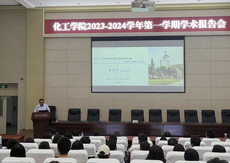 9月14日下午,红足1世足球网址大全在致远楼学术报告厅举办学术报告会,此次报告以《化工产业转型升级与高质量发展——急需化工卓越人才支撑》为主题,特邀兰州理工大学博士生导师李贵贤教授主讲,报告会由院长张兴辉主持,全体教师及相关专业学生200余人参加。