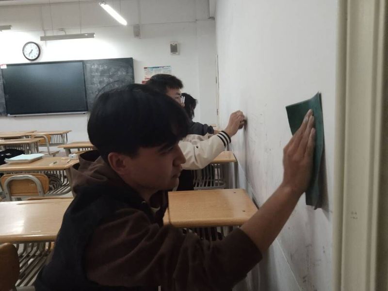 311日,志愿服务队组织志愿者们用砂纸认真清理了教室墙面的涂鸦与字迹,让教室墙壁焕然一新,用实际行动践行雷锋精神。