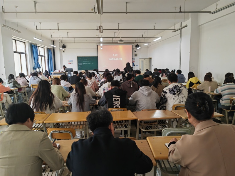 在课堂上,马克思主义学院谢晖老师为同学们讲授《习近平新时代中国特色社会主义思想概论》第五章的内容,就为什么全面深化改革开放和怎样全面深化改革开放进行讲解。师生精神状况良好,课堂秩序井然。