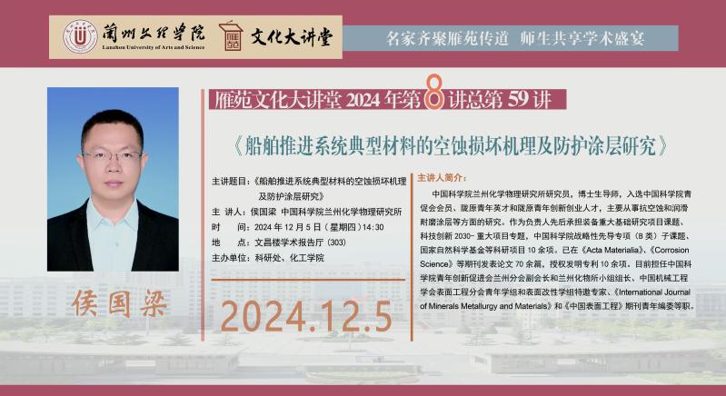 《船舶推进系统典型材料的空蚀损坏机理及防护涂层研究》学术讲座预告